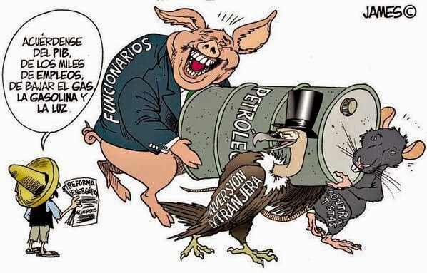 En un cuento para niños. La contrarreforma energética aprobó del despojo, la ocupación de tierras, expropiación de terrenos para beneficio privado de empresas mineras y petroleras; por si fuera poco, los cambios legales promueven el fracking, la fractura hidráulica, que contaminarán agua, tierra y aire. Cada pozo requiere entre 10 y 30 millones de litros de agua y se proyecta perforar 20 mil pozos en dos años.
